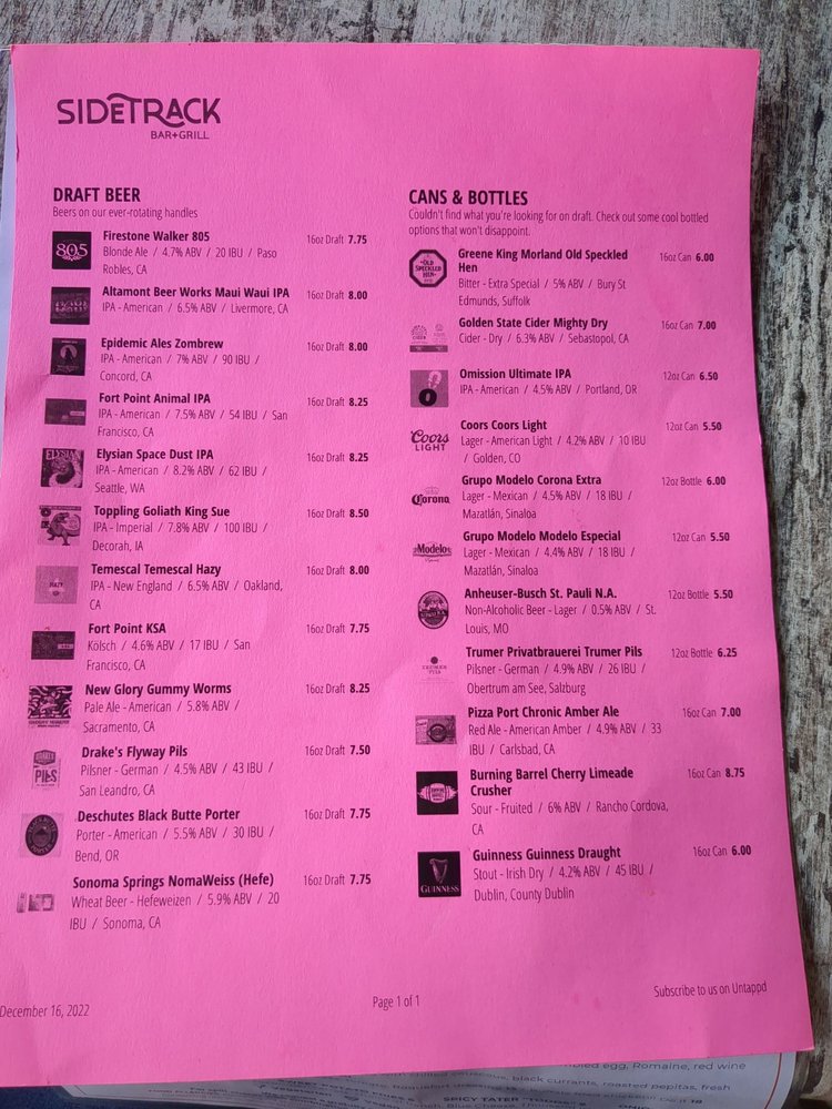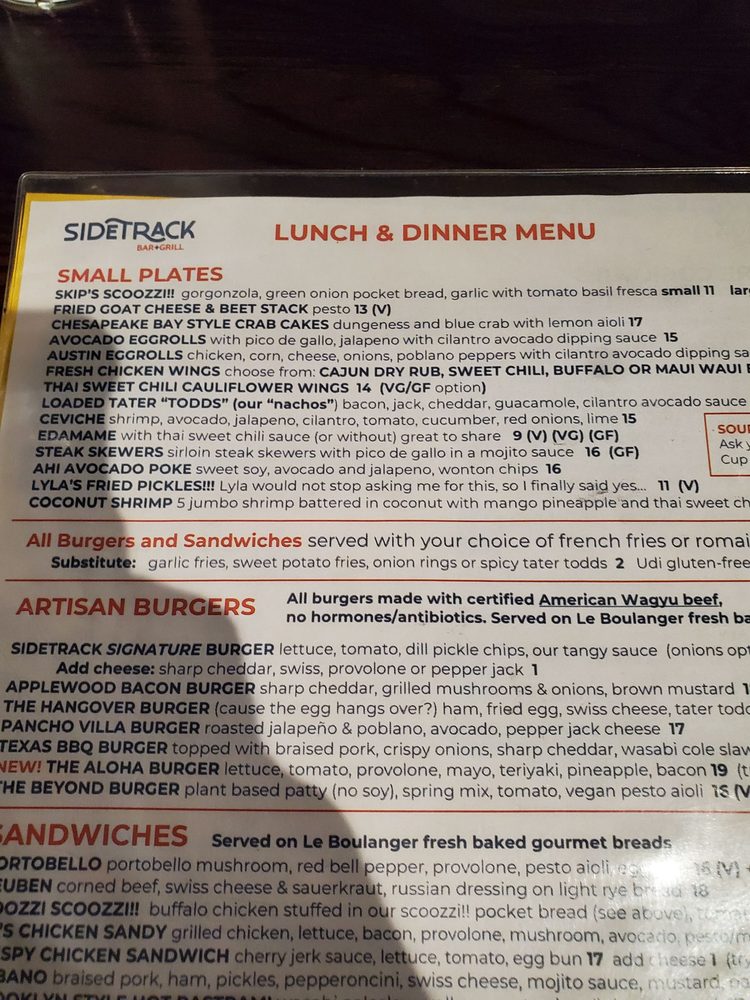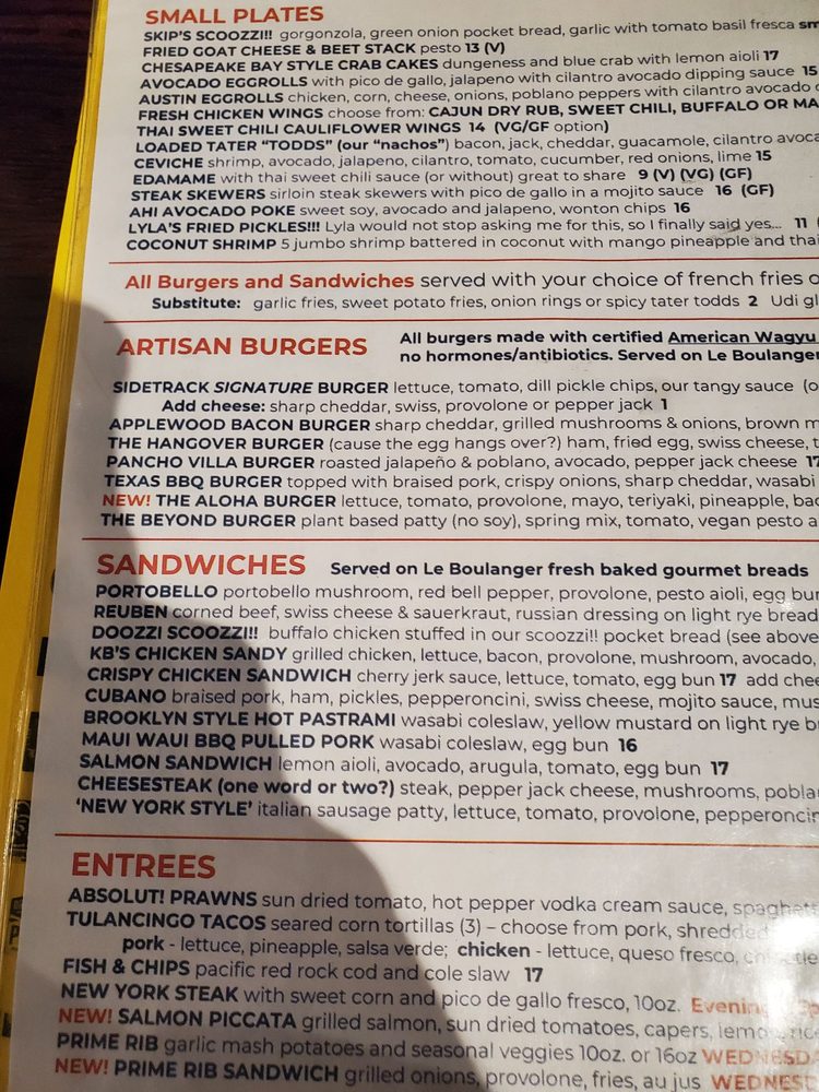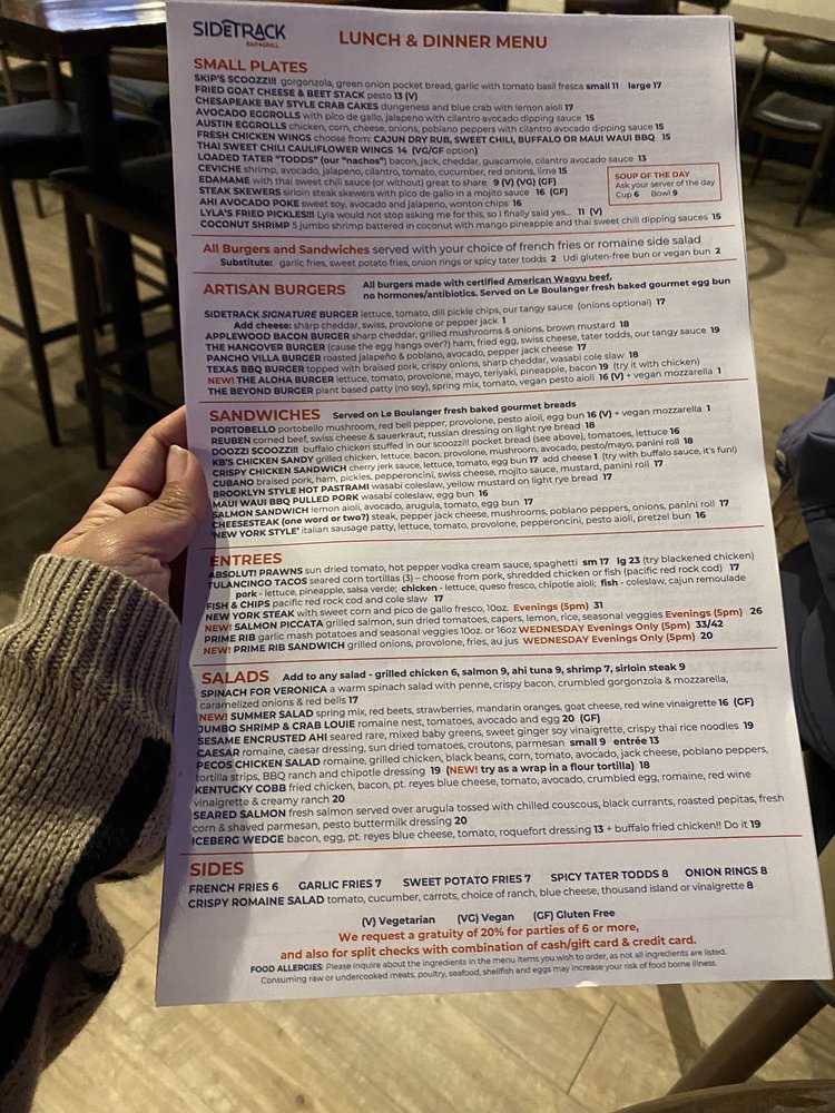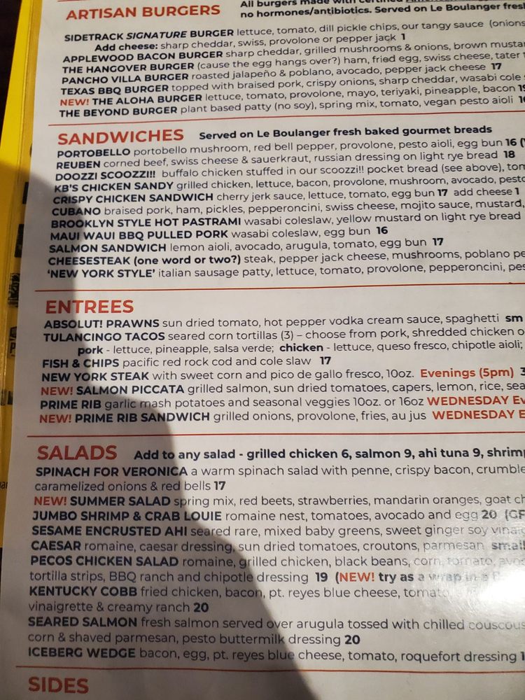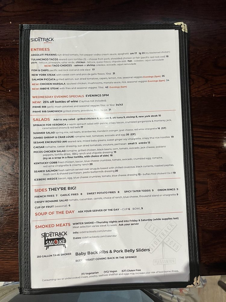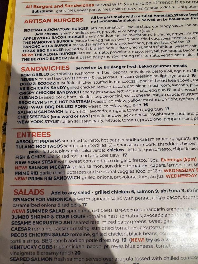 Sidetrack Bar + Grill is a vibrant downtown bar and grill located in Pleasanton, CA, offering a diverse menu with pub-style dishes. Customers rave about the friendly atmosphere and the wrap-around patio, perfect for gathering with friends or family. The menu features a variety of options, including vegan and vegetarian choices, along with smoked meats like their renowned ribs, cooked for five hours for a delectable flavor. The restaurant is wheelchair accessible, offers outdoor seating, and has a full bar with happy hour specials. The attentive staff and prompt service make dining at Sidetrack a pleasant experience. With ample parking, accommodating service, and a cozy setting, Sidetrack Bar + Grill is a hidden gem for casual dining in Pleasanton.